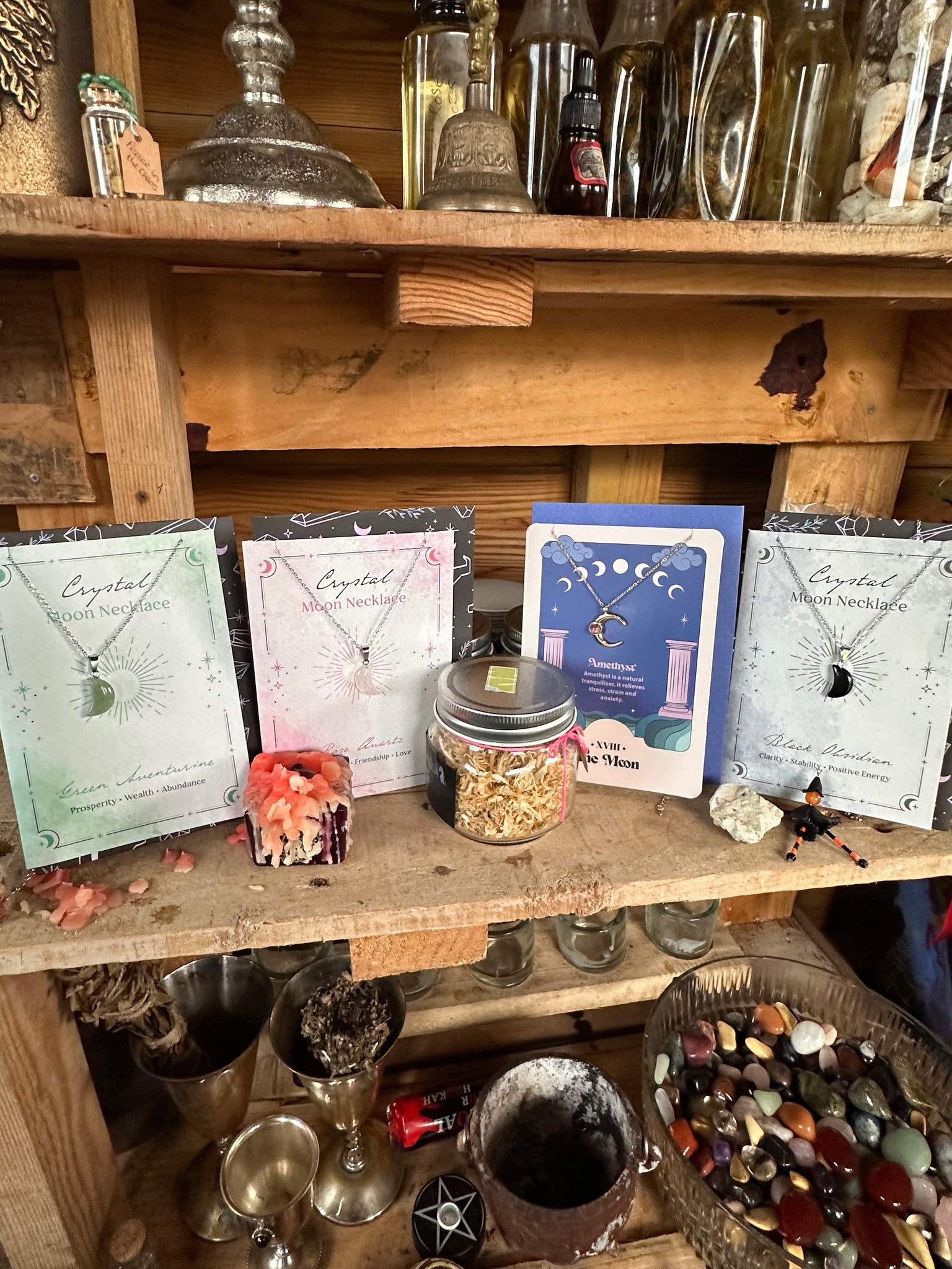 A magical collection of four crystal necklaces, each beautifully presented on an illustrated card and ready to gift or keep for yourself. This bundle brings together four powerful energies to support you through every season of life.